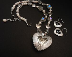 Freshwater Pearl Necklace with a Heart Pendant and Matching E...