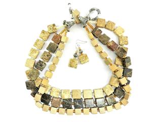 Chunky Feldspar Jasper Gemstone Three Stand Statement Necklac...
