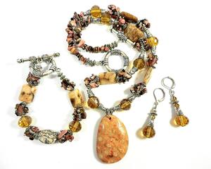 Chrysanthemum Jasper Gemstone Necklace in Pink and Brown Jasp...