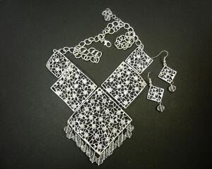 Statement Necklace in Silver with Embedded Crystals and Wire ...