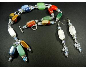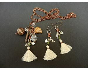 Cream Tassel Necklace with Baubles Crystals and a Jasper Hear...