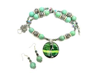 Gold Wire Wrapped Green Ocean Jasper Heart Necklace with Matc...