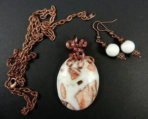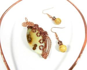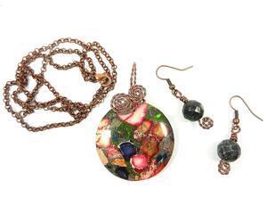 Jasper Gemstone Pendant Necklace Copper Wire Wrapped in the C...