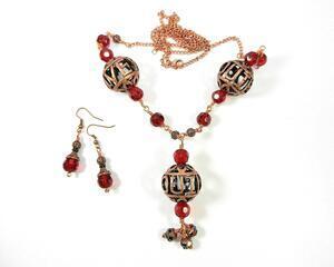 Bare Copper Wire Wrapped I Love You Bead Necklace with Matchi...