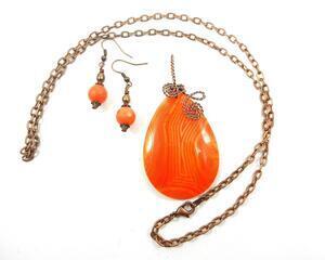 Antique Copper Wire Wrapped Orange and Yellow Banded Agate Pe...