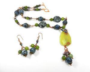 Green Jade with Blue Fire Agate and Spotted Jasper Necklace a...