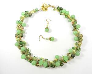 Green Glass Bead and Crystal Crocheted Wire Necklace and Earr...