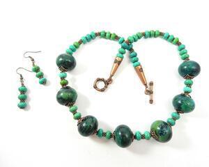 Blue and Green Serpentine Gemstone Necklace with Antique Copp...