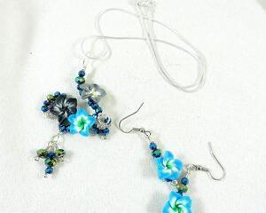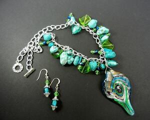 Blue and Silver Lamp Work Pendant with Turquoise and Matching...