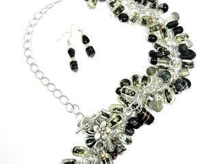 Black Lamp Work and Art Glass Bead Boa Style Necklace and Ear...