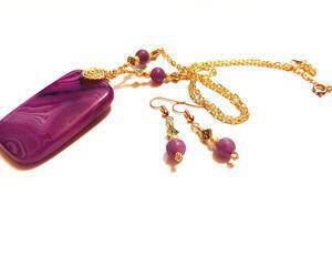 Purple Banded Agate Oblong Pendant Wire Wrapped in Gold Wire ...