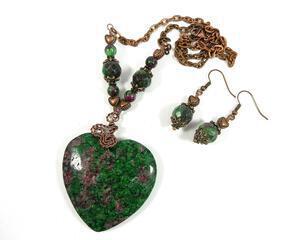 Copper Wire Wrapped Pendant Ruby in Fuchsite Heart Gemstone N...