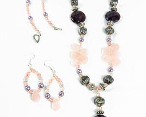 Rose Quartz Purple Jasper and Cherry Quartz Silver Necklace w...