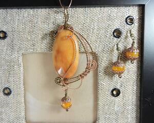 Bronze and Copper Wire Wrapped Orange Yellow Brown Agate Pend...