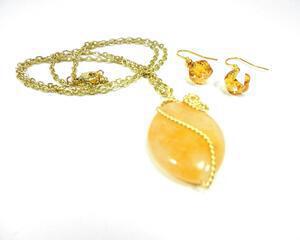 Gold Wire Wrapped Light Yellow Agate Gemstone Pendant with Ma...