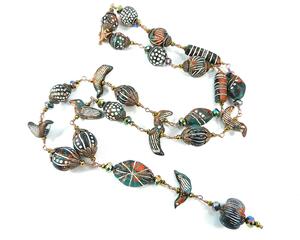 Copper Wire Wrapped Necklaces with Orange White and Blue Clay...