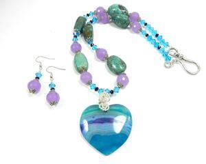 African Turquoise and Lavender Jade Gemstone Necklace with a...