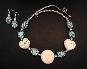 White Lace Jasper and White Turquoise Heart Necklace with Mos...
