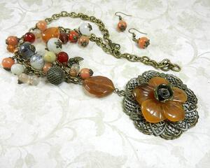 Brown Picasso Jasper Gemstone Pendant Necklace with Matching ...
