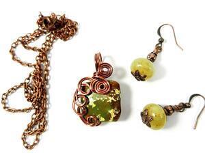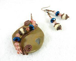 Jasper Gemstone Pendant Copper Wire Wrapped with Matching Jad...