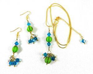 Green Turquoise Gemstone Bead Gold Necklace with Blue Crystal...