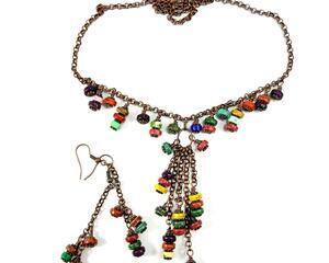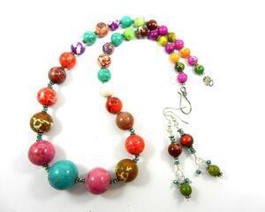 Round Colored Turquoise Gemstone Necklace with Matching Earrings
