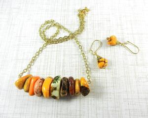 Large Coral Quartz Agate and White Turquoise Necklace and Ear...