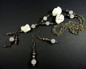White Turquoise Necklace with White Jade Bronze Wire Wrapped ...